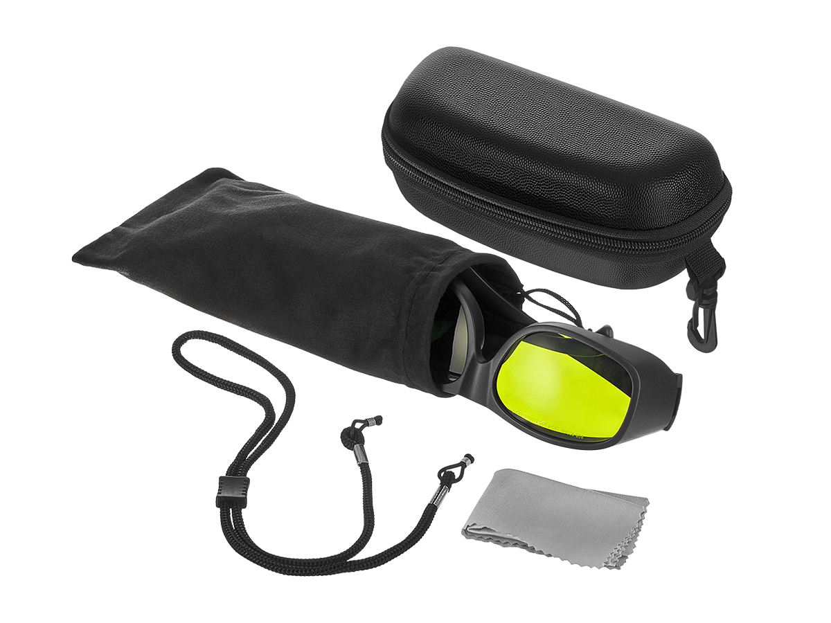 • Высокая степень защиты от лазерного излучения— оптическая плотность линз OD7+ указывает на то, что не более 0.00001% лазерного излучения определенной длины волны может пройти через защитные очки