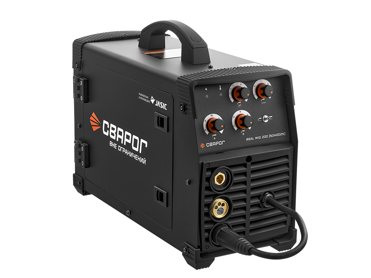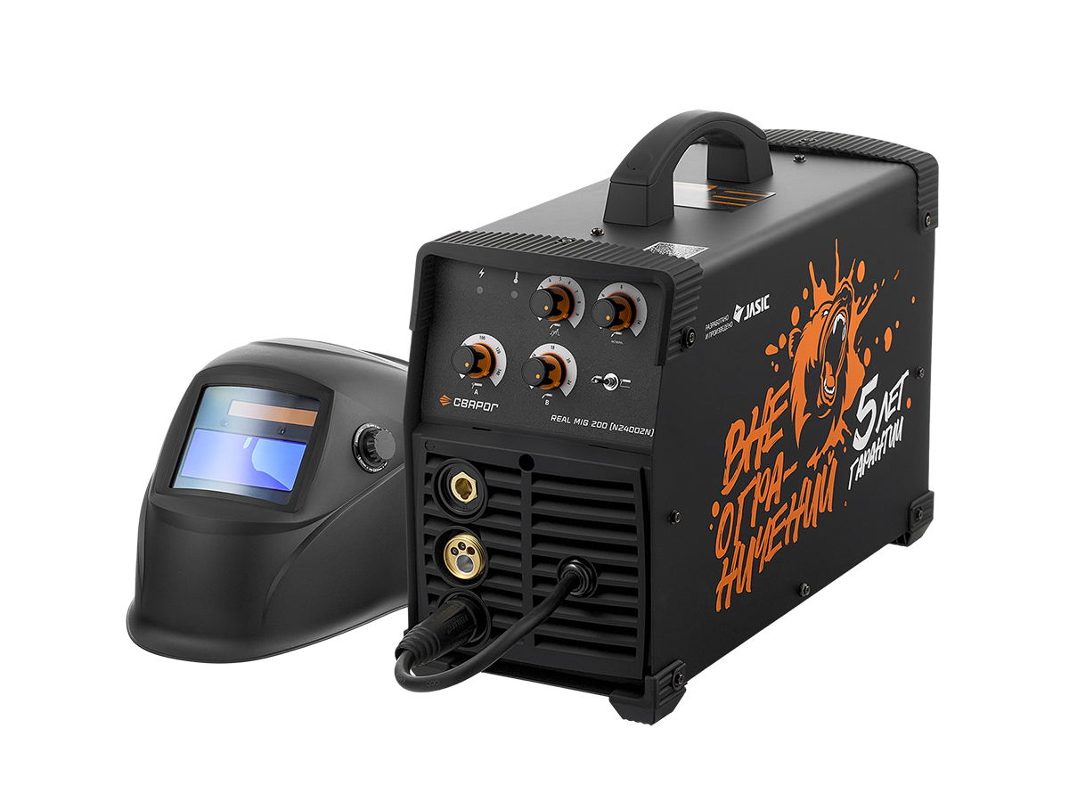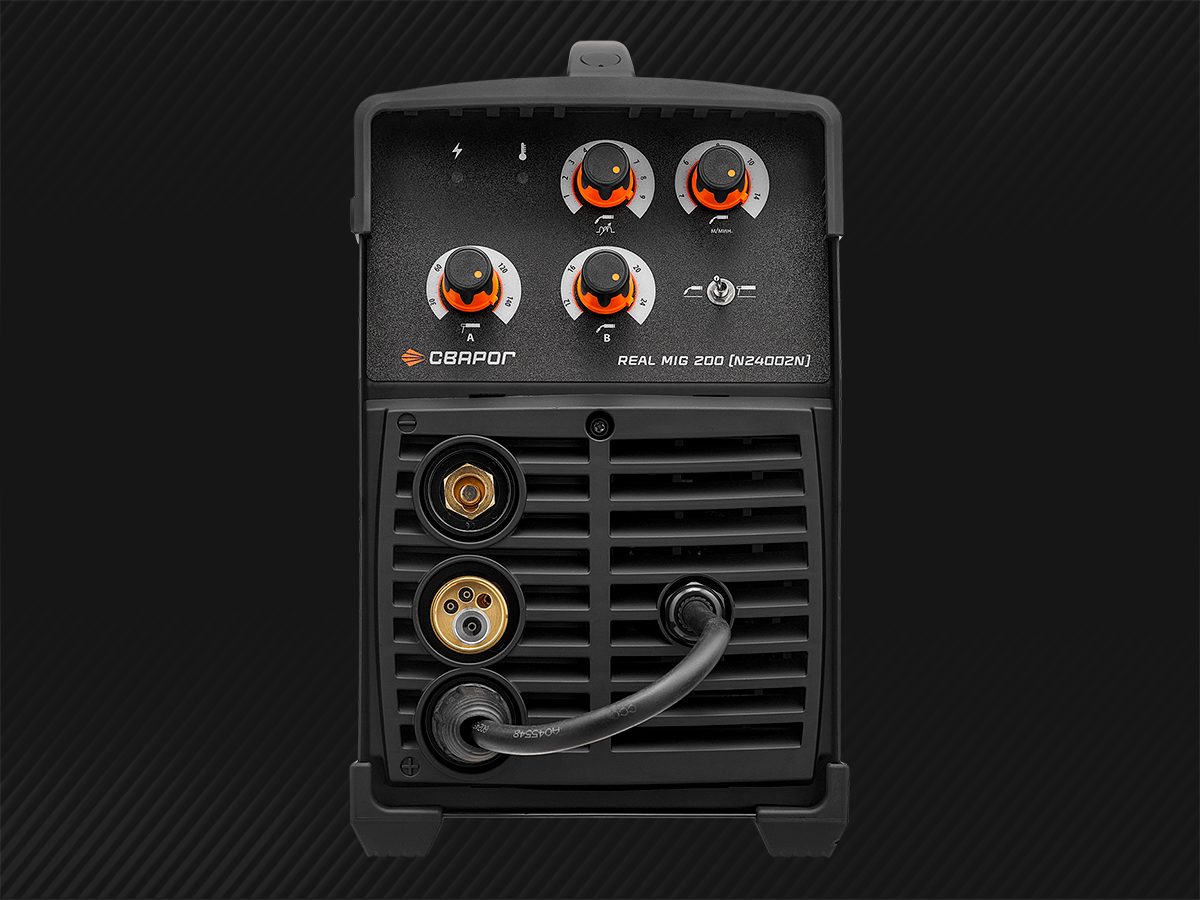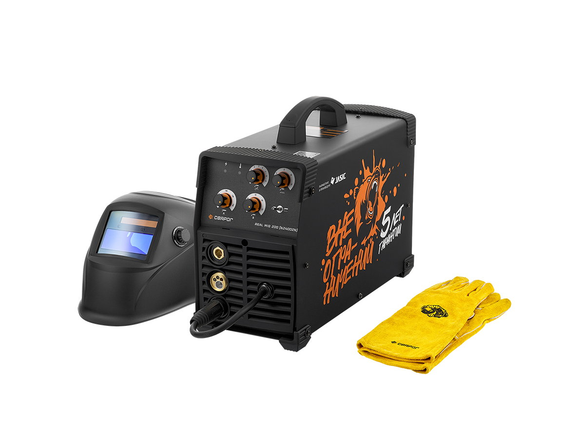 REAL MIG 200 BLACK (N24002N)— инверторный сварочный аппарат для полуавтоматической сварки в среде защитных газов (MIG/MAG), сварки порошковой проволокой (FCAW), а также ручной дуговой сварки покрытым электродом (ММА). Инвертор выпущен в уникальном дизайне и в ограниченном количестве. Отличается от стандартной модели REAL MIG 200 (N24002N) стильным дизайном, расширенной комплектацией.