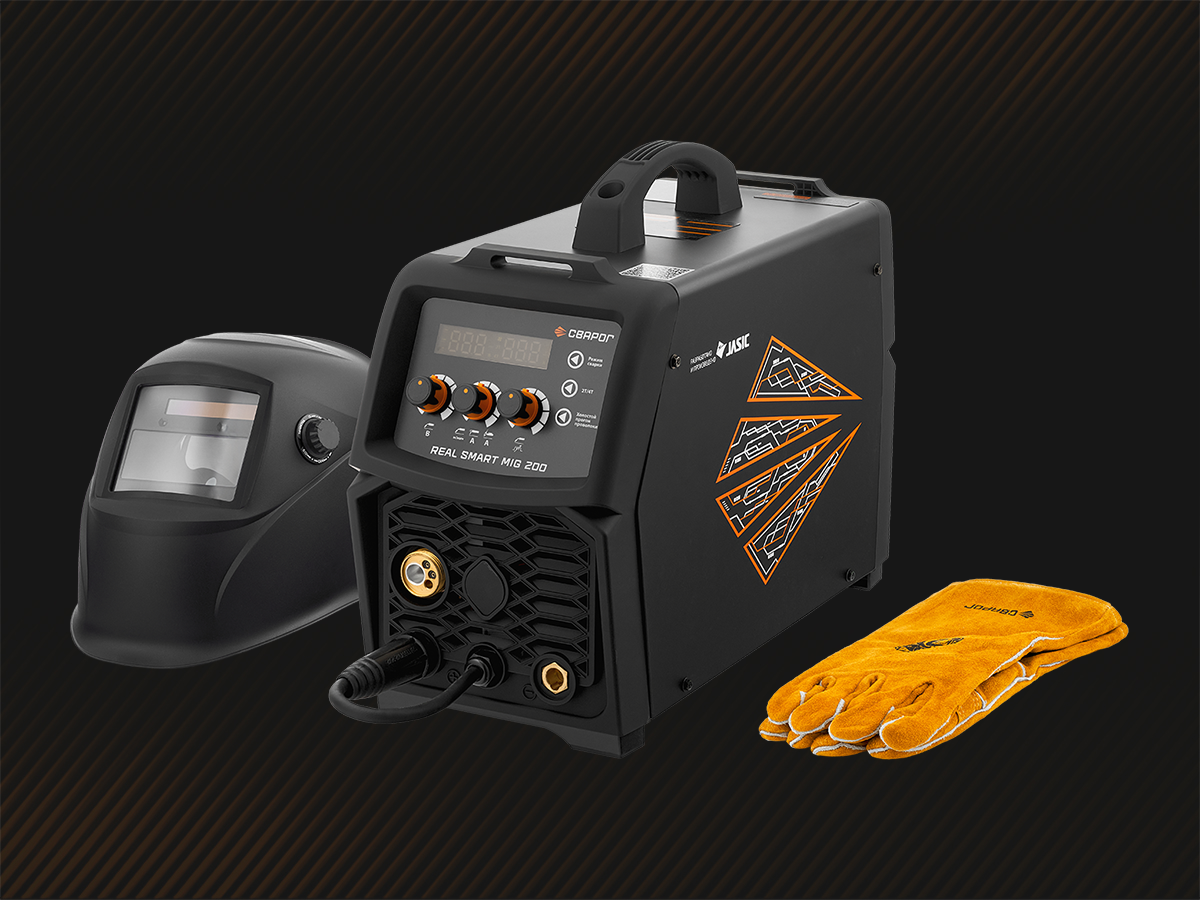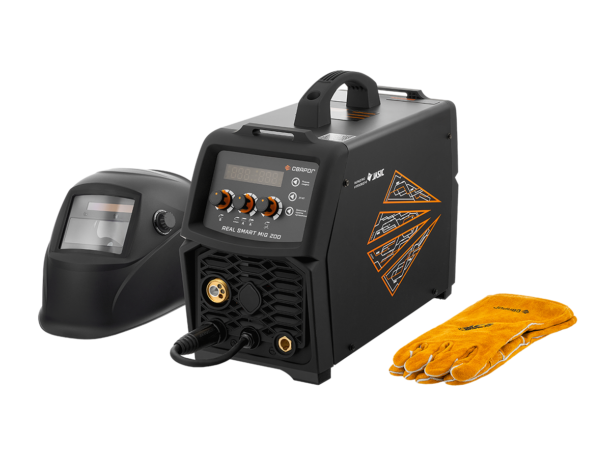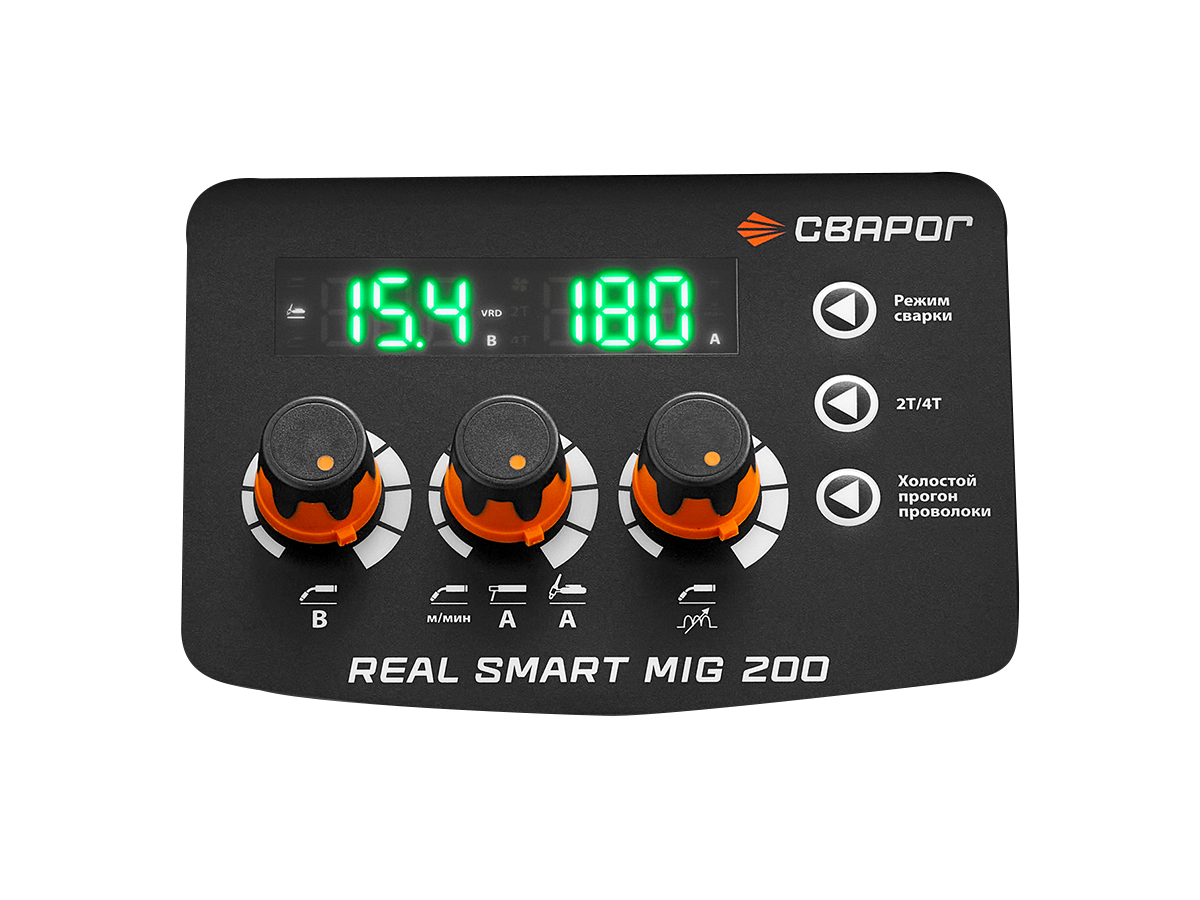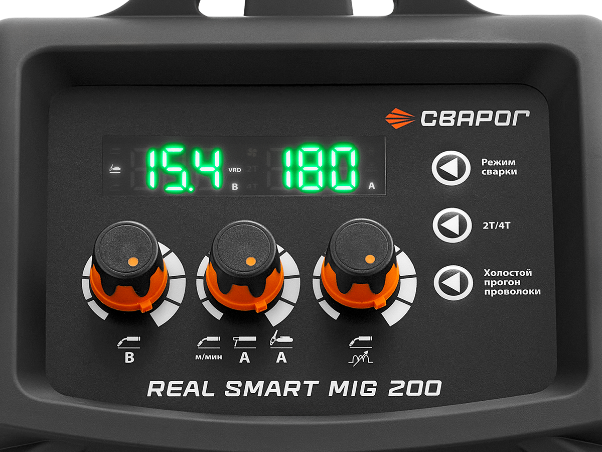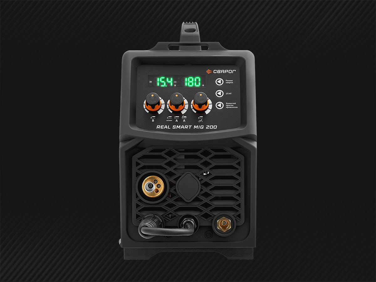 REAL SMART MIG 200 BLACK — универсальный, многофункциональный аппарат, предназначенный для полуавтоматической сварки сплошными и порошковыми проволоками (MIG/MAG), для ручной дуговой сварки покрытыми электродами (MMA), а также аргонодуговой сварки неплавящимся электродом (TIG). Все режимы являются полноценными и каждый содержит большой набор вспомогательных функций: